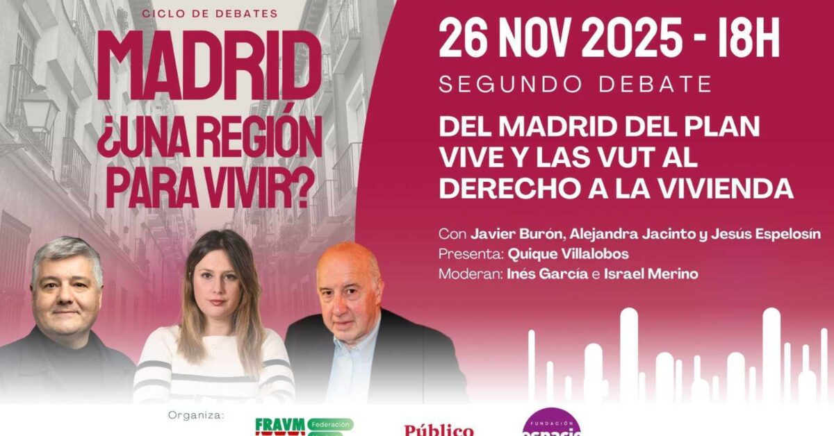 El coloquio, organizado desde la Fundación Espacio Público y la Federación Regional de Asociaciones Vecinales de Madrid, ha contado con la participación de Alejandra Jacinto, Javier Burón y Jesús Espelosín. Moderaron el debate Israel Merino e Inés García Rabade.